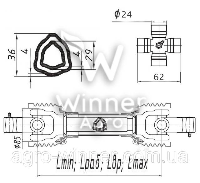 Карданний вал косарка, обприскувач, картопелькопало, сітківка тощо.